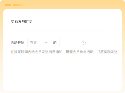支持设置活动当天或者之前7天的固定时间点自动为会员发放奖励。