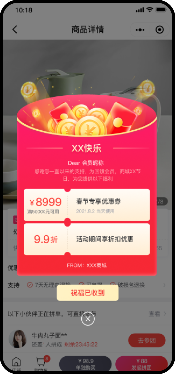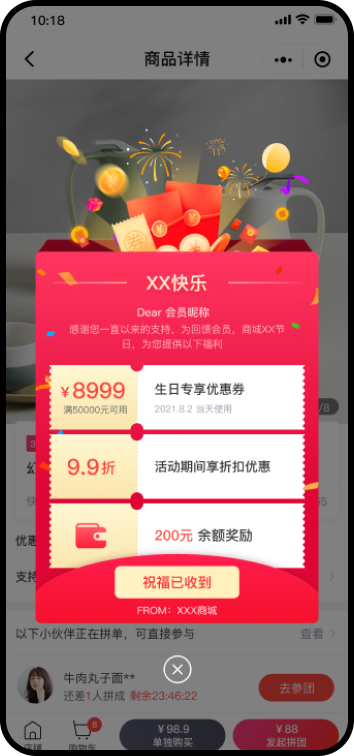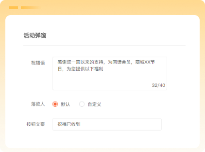 商户可自定义活动弹窗的样式和内容,强调节日仪式感,增强会员黏性。