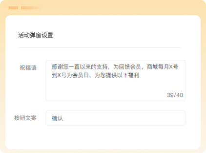 商户可以根据会员日的实际情况,自定义活动弹窗的样式和内容。