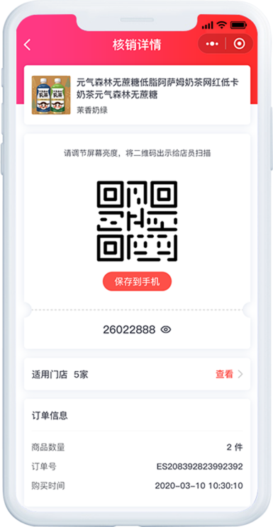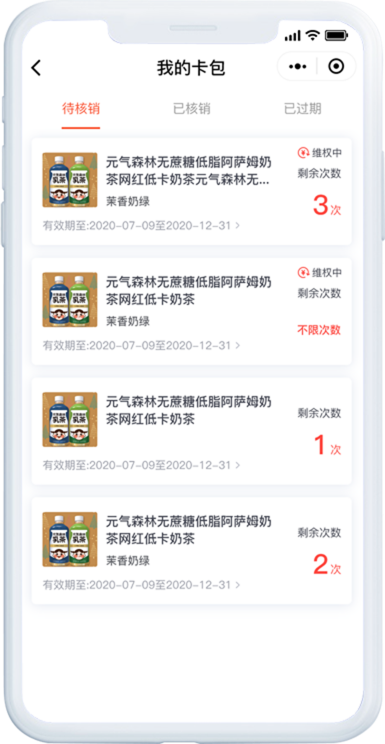 商品核销时间、次数、核销门店、购买时间等核销记录快速查看,随时了解计次时商品核销情况。